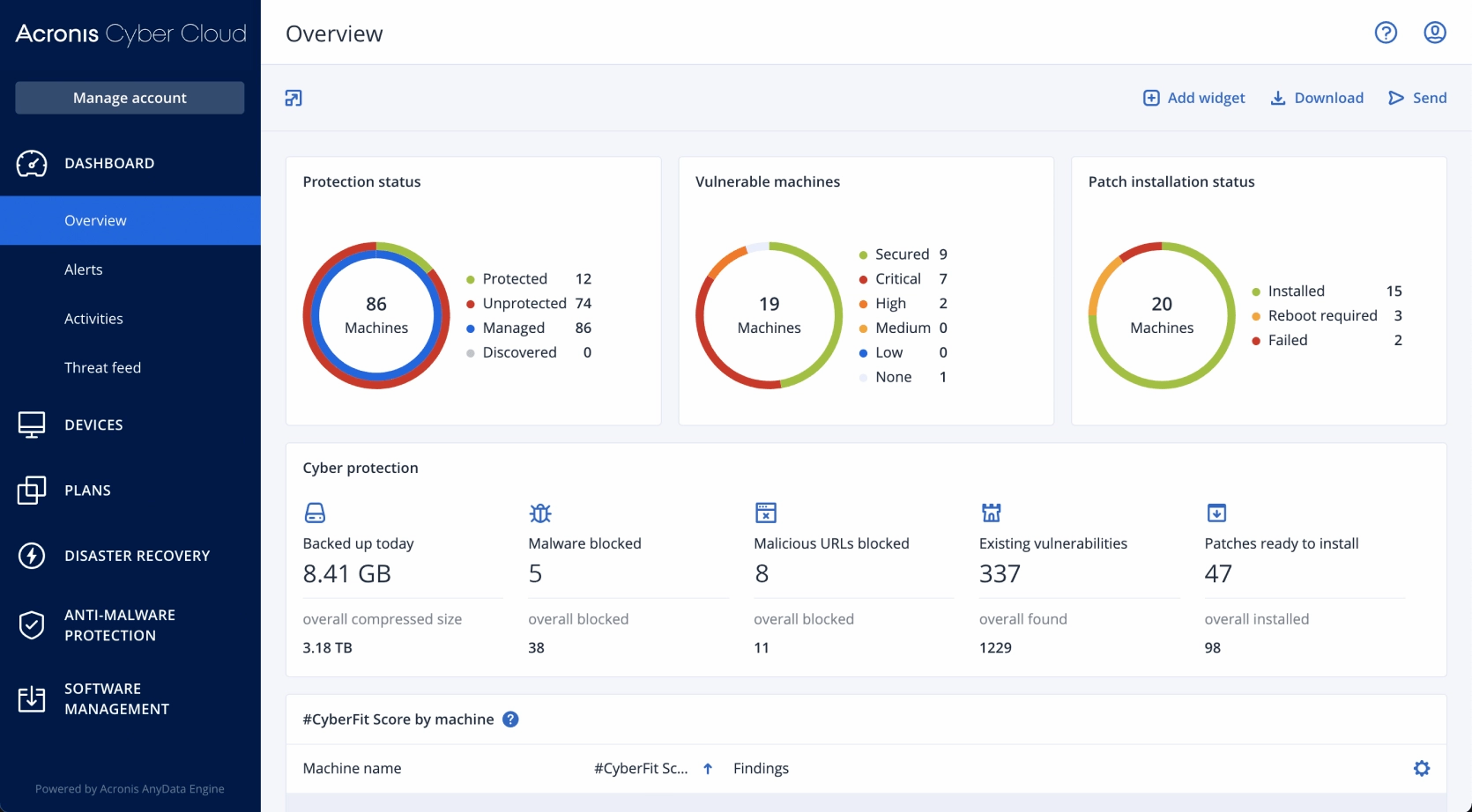 Solution that natively integrates cybersecurity, data protection and management for endpoints, cloud, virtual servers and other systems.